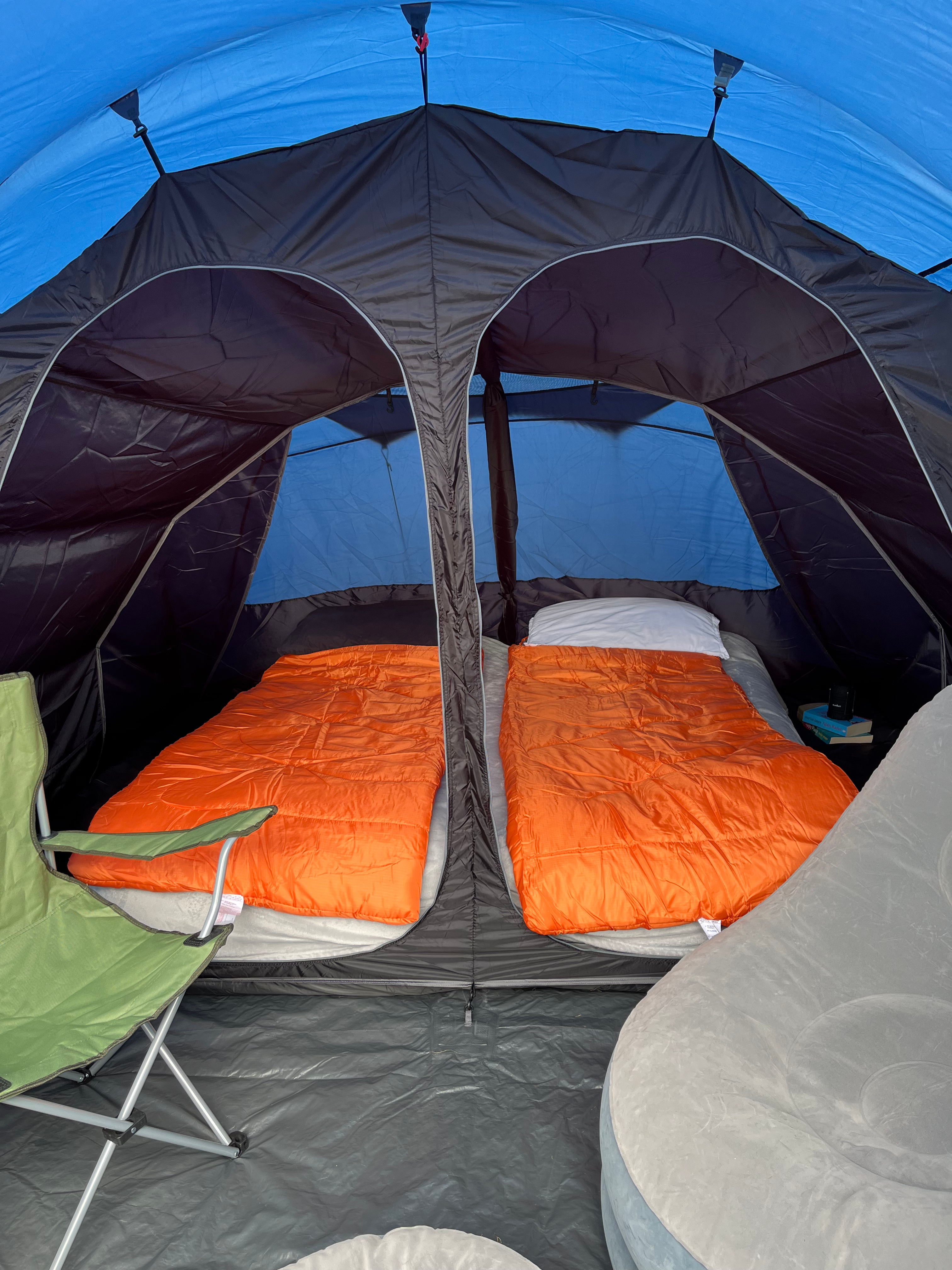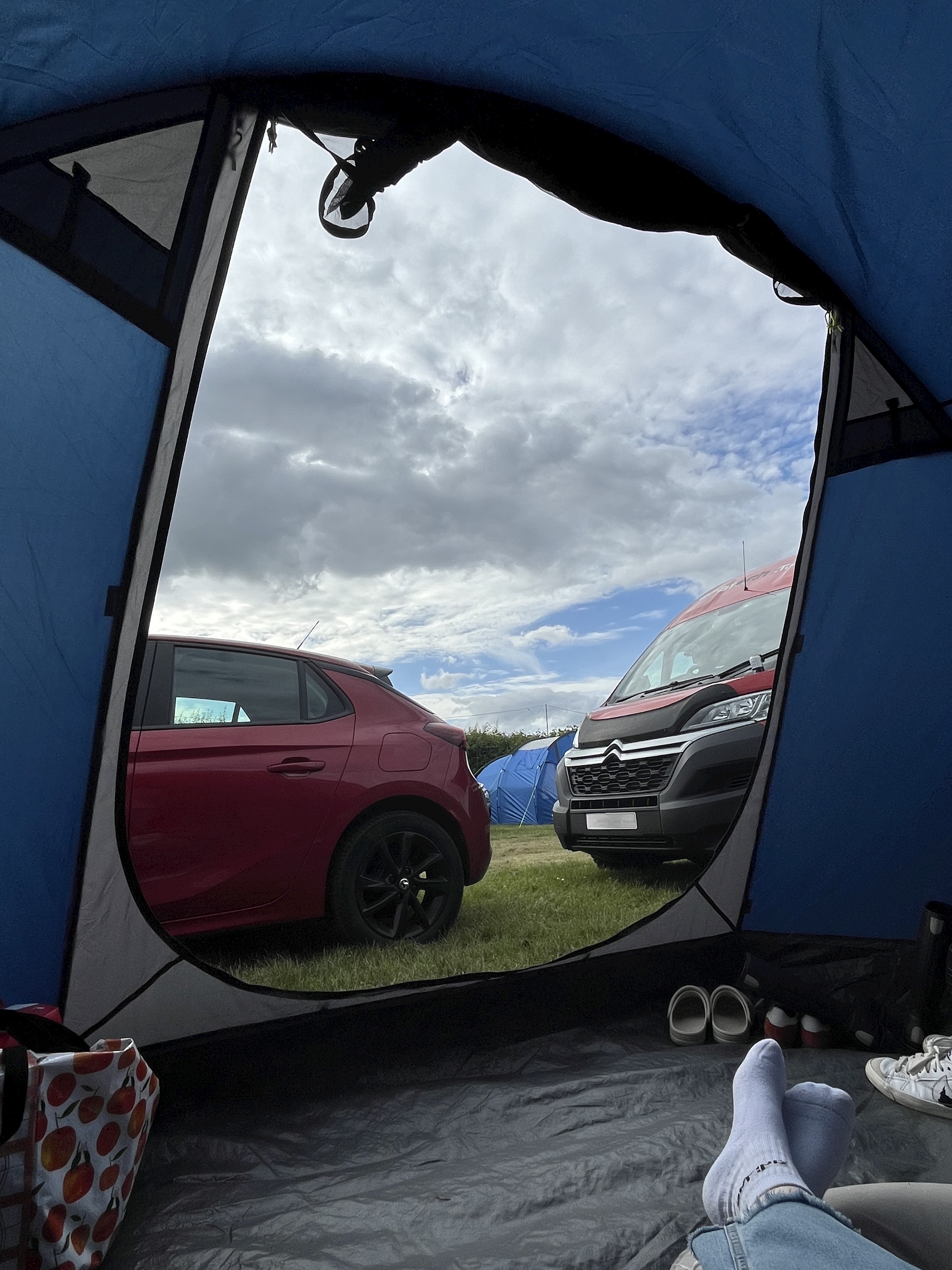 Despite the heavy rain, we decided to try cooking at dinner time, not the best decision! But I didn’t want to spend a mortgage on the food trucks at Woodlands every day. Due to the stormy weather, we stayed in the tent for the rest of the night playing cards and falling asleep to the sound of Stormzy performing on the main stage all the way back at the track.