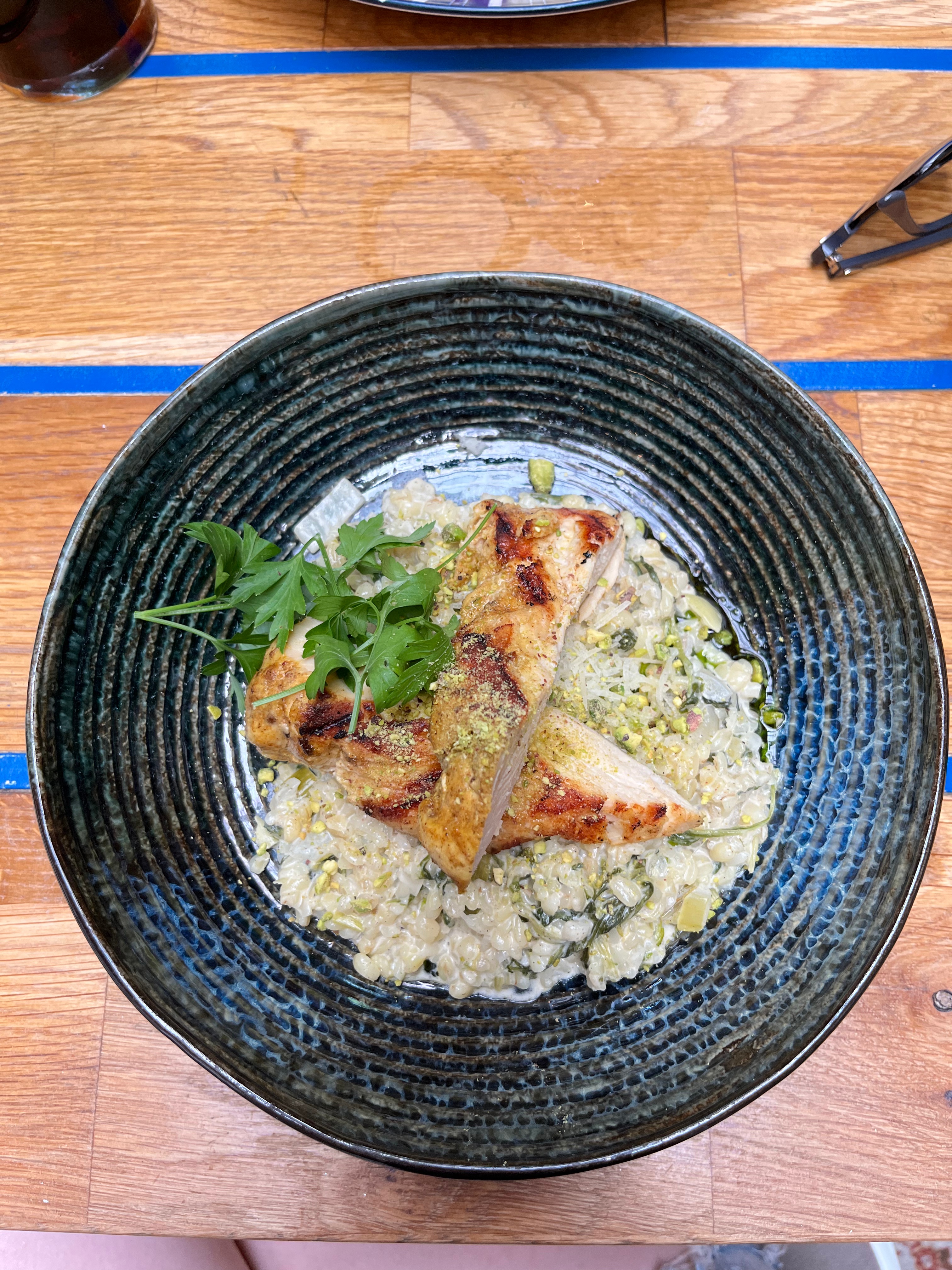 I had trouble sleeping all week… I was up every morning at around 5am and tidying up and reading in the kitchen for around three hours while waiting for the boys to get up one by one. On our first morning, Joe and I went to get breakfast – pain au chocolat and croissants from a bakery 2 minutes away from the flat. At 10:30 the boys had another breakfast, and I had lemonade. It was boiling hot, and there was no breeze to help the situation. After spending hours wandering the city, we found shelter in a beautiful restaurant, Mazel Tov where I had the best risotto ever, I’m still thinking about it now… By 4pm the 6 of us were completely knackered and desperate to go home to shower and nap, before going back to the pizza place (PizzaMe) for food again!